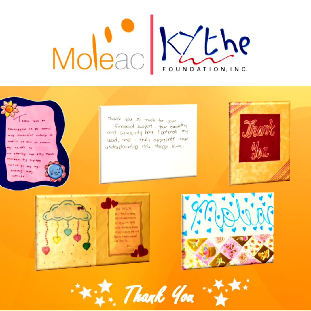 Since 2022, Moleac has proudly supported the Kythe Foundation (www.kythe.org), a non-profit organization dedicated to bringing hope to children with cancer and chronic illnesses in the Philippines.