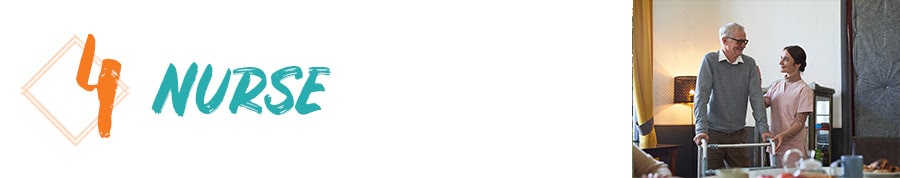 The nurse helps look after patients throughout the day assisting with everyday functions and checking on a patient’s daily well-being.