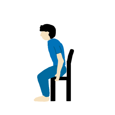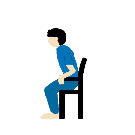 - Sit on a chair with your back straight and your feet flat on the floor.