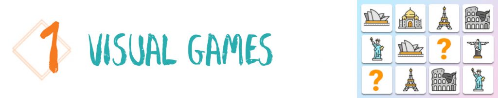 - Pairs: A game where players try to pick two of the same cards. Excellent for training memory to recognize multiple objects.